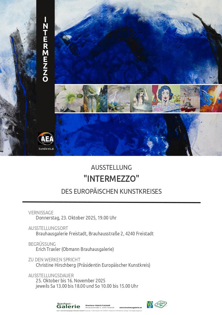 Ich freue mich, bei der Intermezzo-Ausstellung des Europäischen Kunstkreises in Freistadt mit dabei zu sein. Ebenfalls mit dabei sind sechs Majestätische Monatsvögel, die es so richtig genießen werden, sich im wunderschönen Ambiente der Brauhausgalerie zu präsentieren.