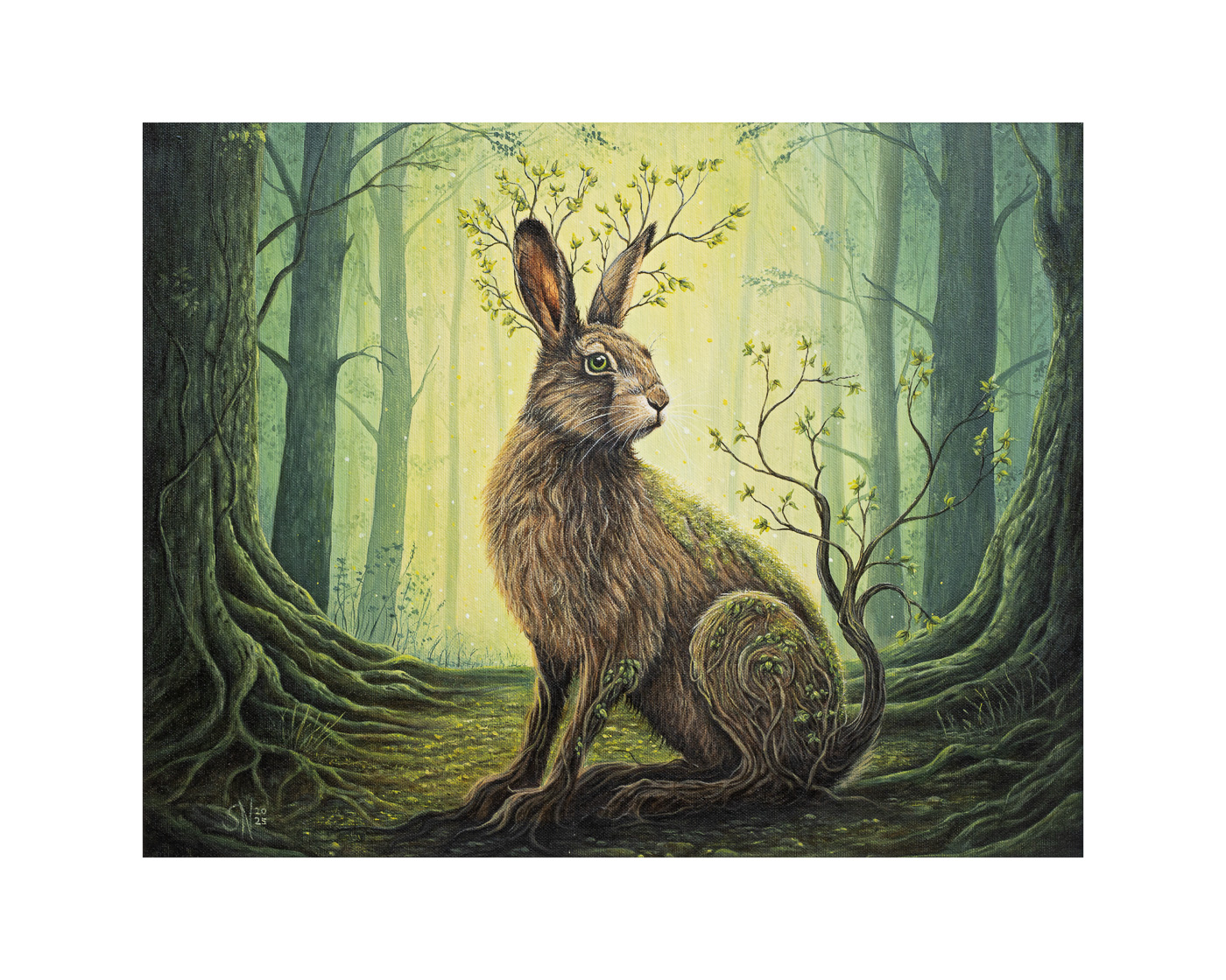 Fine Art Print (Giclée) meines Original-Ölbildes “Wurzelhase”, handsigniert und -nummeriert unterhalb des Motivs.